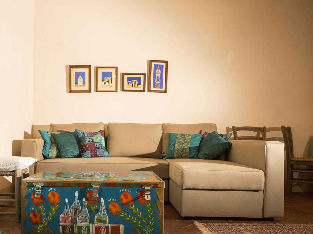 Suite con terrazzo e giardino privato, dotato di bagno privato. La Camera 1 è composta da un comodo letto di dimensioni imperatore (2x2m) e un divano letto doppio, perfetto per ospitare più persone.