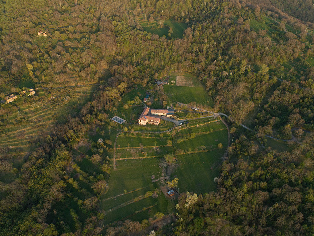 Circondato da lussureggianti foreste verdi, dolci colline e uliveti terrazzati, Podere Conti è un'appartata fattoria di 200 acri situata ai piedi delle montagne dell'Appennino nel nord della Toscana.