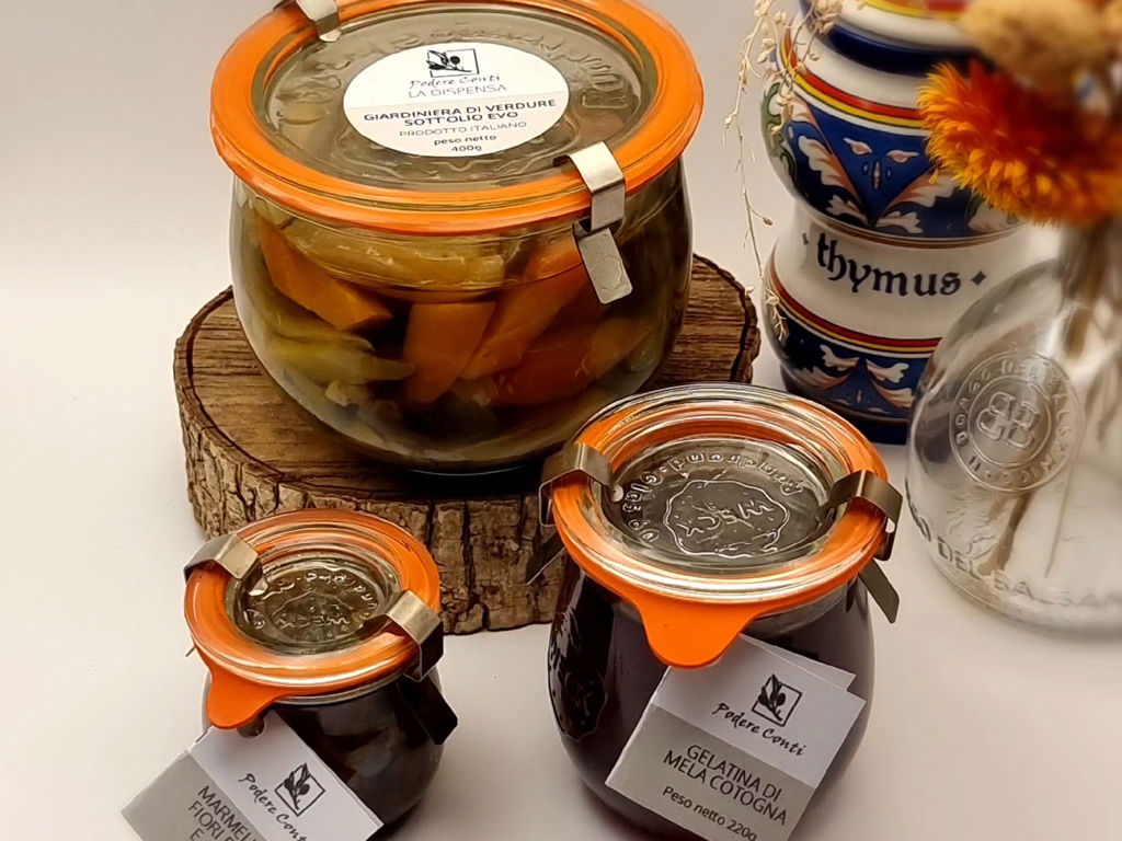 La Dispensa è pensata per gli ospiti che scoprono un sapore a Podere Conti e desiderano ritrovarlo anche dopo il soggiorno.